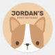 Pegatina Redonda Perro de Corgi con nombre personalizado