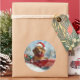 Pegatina Redonda Perro de Dachshund en la cornisa, Navidades de la