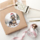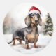 Pegatina Redonda Perro de Dachshund en Navidades de nieve