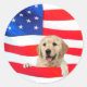 Pegatina Redonda Perro de Golden Retriever en la bandera
