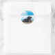 Pegatina Redonda Perro de montaña de Bernese en la playa