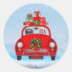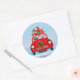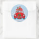 Pegatina Redonda Perro de perro caniche en auto con Santa Claus