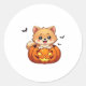 Pegatina Redonda Perro de Pomerania Feliz calabaza de Halloween Cla