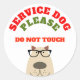 Ilustracion lindo de un recuperador de Labrador con gafas, esta raza es usada a menudo por personas ciegas o con problemas visuales. El texto encima de la cabeza del perro dice: "Perro de servicio, por favor no toques".