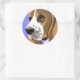 El Basset Hound Art se encuentra en pegatinas redondos y es de tamaño pequeño o grande.
