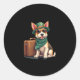 Pegatina Redonda Perro divertido viajando con gráfico de bolsos par
