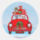 Pegatina Redonda Perro Doberman en auto con Santa Claus