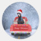 Pegatina Redonda Perro Doberman en Nieve sentado en un camión de Na