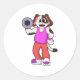 Pegatina Redonda Perro en Bodybuilding con Dumbbell