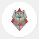 Pegatina Redonda Perro en Poker con tarjetas de póker