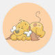 Pegatina Redonda Perro feliz con las camisetas y los regalos del