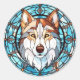 Pegatina Redonda Perro Husky Siberiano de Cristal Manchado