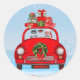 Pegatina Redonda Perro Husky Siberiano En Coche Con Papá Noel