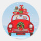 Pegatina Redonda Perro Inu Shiba En Coche Con Santa Claus