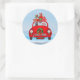 Pegatina Redonda Perro Labrador en auto con Santa Claus