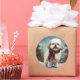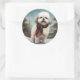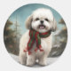 Pegatina Redonda Perro Malti Tzu en Navidades de nieve