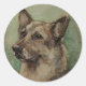 Pegatina Redonda PERRO MINIATURO VICTORIANO RETRATA A Pastor Alemán