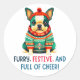 Pegatina Redonda Perro Navidad cálido y difuso