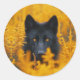 Pegatina Redonda Perro negro con ojos de oro asombrosos