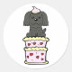 Pegatina Redonda Perro negro gracioso saltando de un pastel