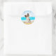 El perro lindo sentado en la playa es un regalo perfecto para alguien que ama esta raza de perro.