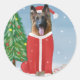 Pegatina Redonda Perro pastor alemán en nieve con regalos de Navida
