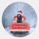 Pegatina Redonda Perro pastor alemán en nieve sentado en Navidades