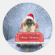 Pegatina Redonda Perro pekingés en nieve sentado en un camión de Na