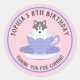 ¿Qué es mejor que un fiesta de té para niños? ¡Un fiesta de cachorro de té para niños! Estos pegatinas de cumpleaños incluyen un ilustracion de un cachorro Husky siberiano con los ojos azules en una taza de té. Este juego de taza de té liviano morado tiene un patrón de punto de polka blanco, y el fondo es un rosa claro. Personalice a estos niños cumpleaños Gracias Pegatinas con su propio mensaje y nombre de niño. El mensaje predeterminado es "El octavo cumpleaños de Sophia" y "Gracias por venir" y está en una fuente gris.