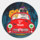 Pegatina Redonda Perro Pug conduciendo auto asusta Halloween
