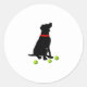 Pegatina Redonda perro recuperador labrador con bola de tenis de la