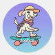 Pegatina Redonda Perro retro en la calle en Skateboard | Divertido
