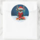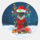 Pegatina Redonda Perro Schnauzer en nieve con regalos de Navidades