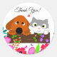 Pegatina Redonda Perro Y Gato Con Flores Y Mariposa