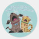 Pegatina Redonda Perro y gato llorosos -qué vergüenza tan llorosa