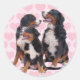 Pegatina Redonda Perros de montaña de Berna con corazones rosas