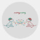Pegatina Redonda Perros jugando con Navidades Fiesta de luces