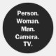 Pegatina Redonda Persona. Mujer. Hombre. Cámara. TV.