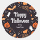 Pegatina Redonda Personajes de halloween ilustrados en bg negro