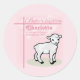 Pegatina Redonda Personalizable, bautismo, rosa, Chica, cordero