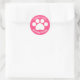 Estos pegatinas muestran una huella de pata blanca en un fondo rosado con el texto que elija. Son ideales para las huellas de la pata, con temática de perro, con temática de gato o para fiestas de cumpleaños con temática animal.