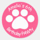 Pegatina Redonda Personalizable Cumpleaños PAWty - Rosa