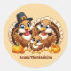 Pegatina redondo clásico de personalizable de pavo de Acción de Gracias