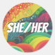Pegatina Redonda Personalizable, él/él, Pronounes arcoiris