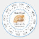 Este adorable pegatina le ayudará a seguir la pista de la frescura de sus productos horneados. Cuenta con un ilustracion de pan acuático con el texto "Baked Fresh just for you by" y una línea de texto de personalizable para introducir tu nombre o el nombre de tu negocio. El texto externo incluye 12 meses y 31 días. Circular el mes y el día para indicar la fecha en que se horneó el artículo. Negro, blanco y azul.