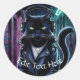 Personalizado Black Leather Jacket Guay Cat Auriculares DJ Classic Round Pegatina generado. ¡Edita texto en pegatina con tu propio nombre o palabras!