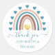 Pegatina Redonda Personalizado arcoiris azul beige Gracias Baby Sho
