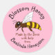Una linda abeja de miel personalizado decora esta etiqueta para miel de flores casera.