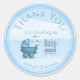 Personalizado Azul Gracias Pegatina redondo clásico de Baby Shower. Personaliza con tu nombre.
