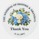Pegatina Redonda Personalizado Boda Floral Azul y Blanco Gracias